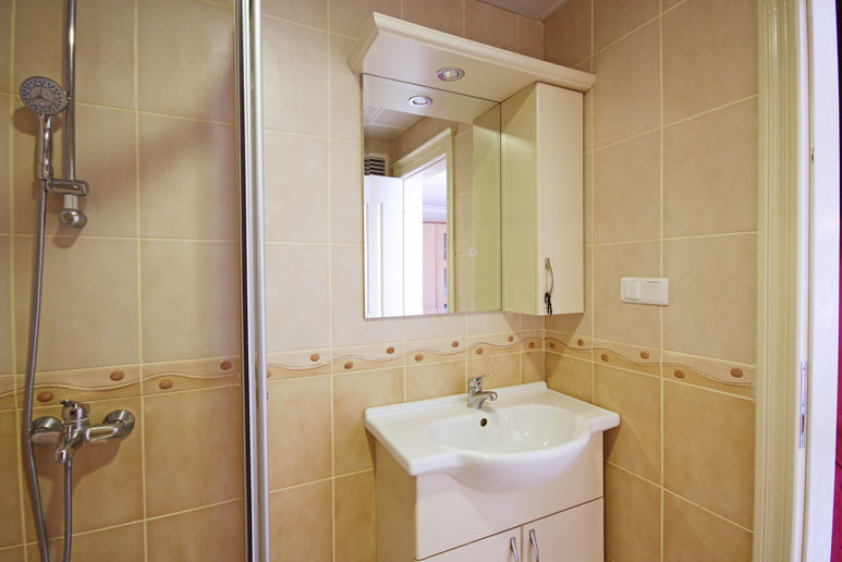 This well-maintained complex is surrounded by hedged pathways, with an outside BBQ, ball court, and fitness and sauna facilities. There is, of course, an enticing swimming pool and sun terraces, but the glorious sandy beach is just a short stroll away across the road. Local markets, restaurants and bars of Mahmutlar are right on the doorstep, and the cultural sights of Alanya centre are just 12km away by road.
