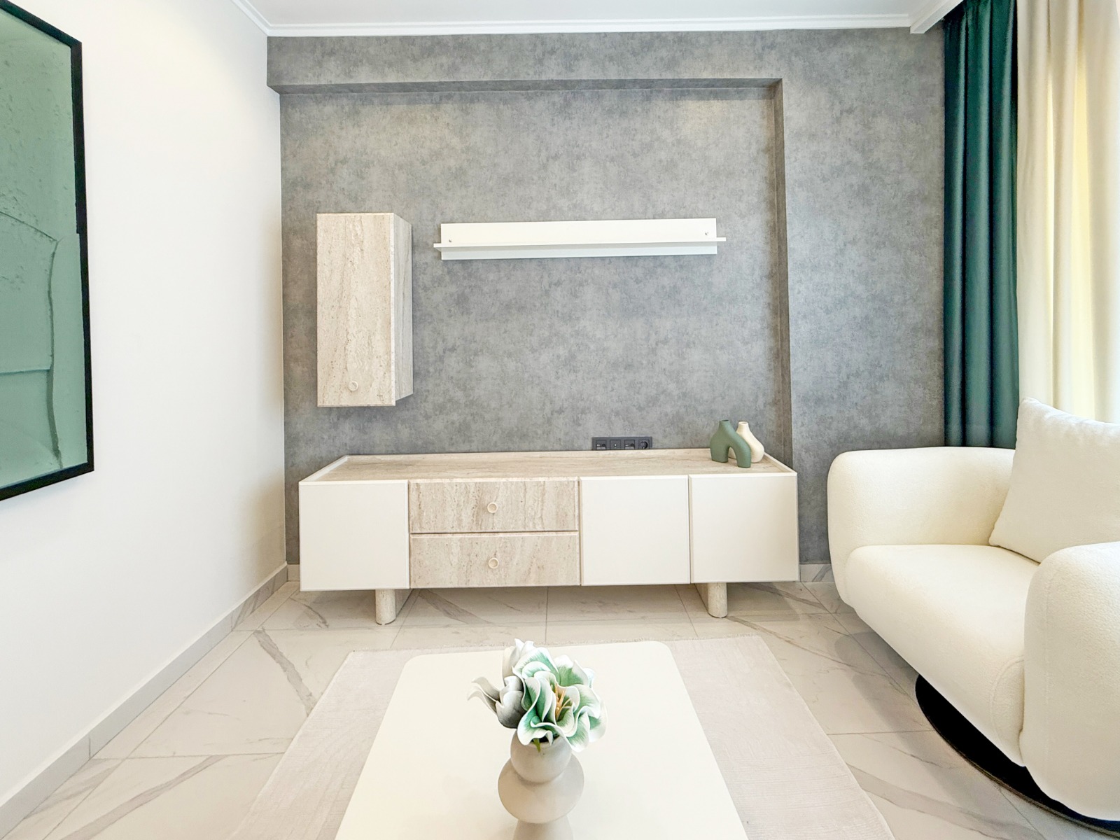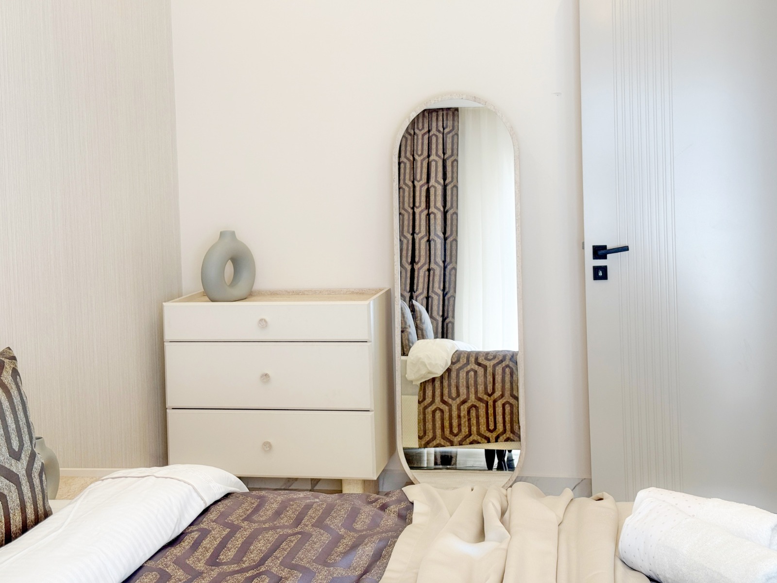 The residence offers a wide range of amenities including indoor and outdoor pools, Turkish bath, sauna and a fully equipped fitness center. You’ll also find a cinema, massage rooms, barbecue area, game zones, and sports tables. Parking, elevator, security cameras and a generator are included.