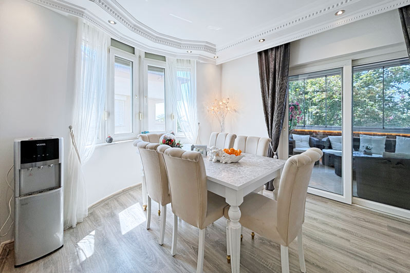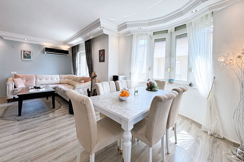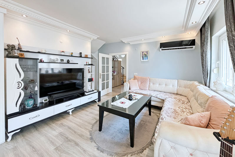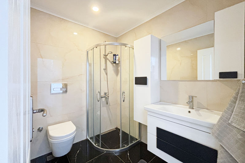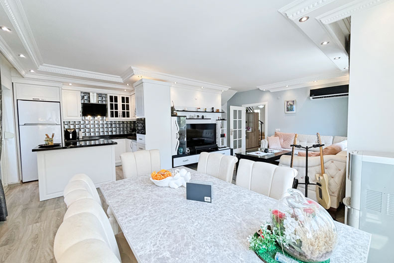 The property is on a well-maintained complex with a gorgeous swimming pool and wide sun terraces, tennis court and gym. Kargicak itself is a quiet rural area with a spectacular shoreline and country landscape. There is a small local centre nearby with grocery shops, restaurants and bars, and the nearest town of Mahmutlar is just 3.8km away.