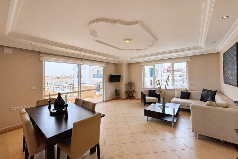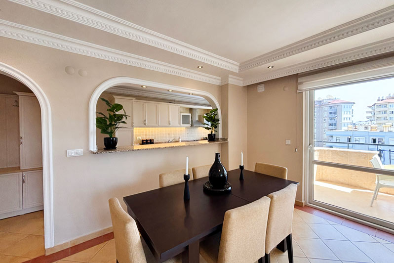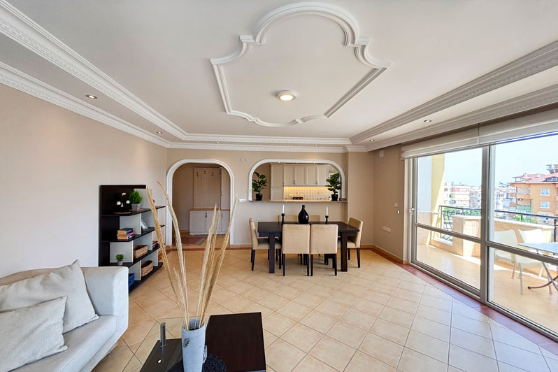 This delightful penthouse property is situated in a highly desirable location, just 650m from the sandy beach and blue sea. It is just a short walk to the numerous shops, bars, restaurants and the famous Friday market. Alanya is a vibrant town with all the amenities you need close by. For those interested in nightlife or history, it is only 1km from the centre of Alanya with its discos, picturesque harbour and dramatic castle.