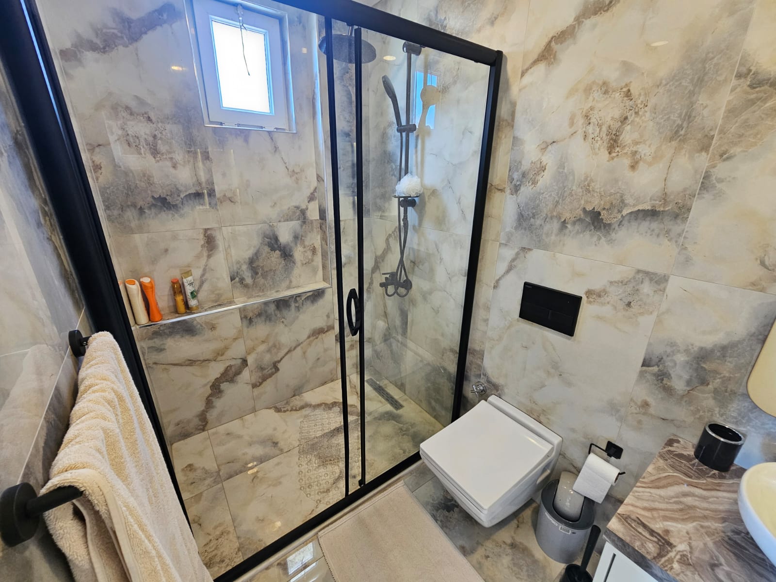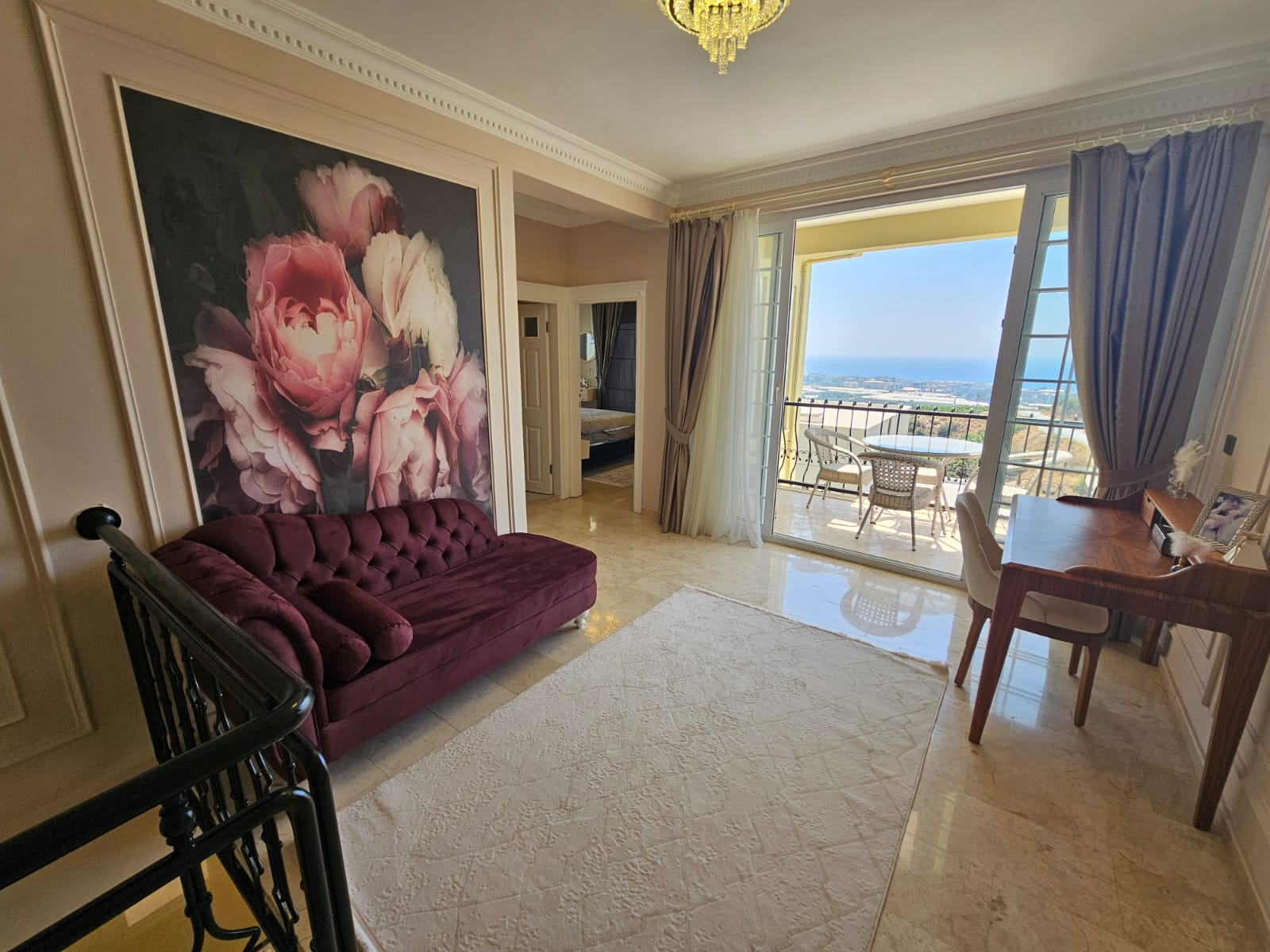The second floor includes three bright and spacious bedrooms, a large hall, two bathrooms and a balcony with panoramic views of the city and the Mediterranean Sea. All rooms are designed in a modern style using high-quality materials.