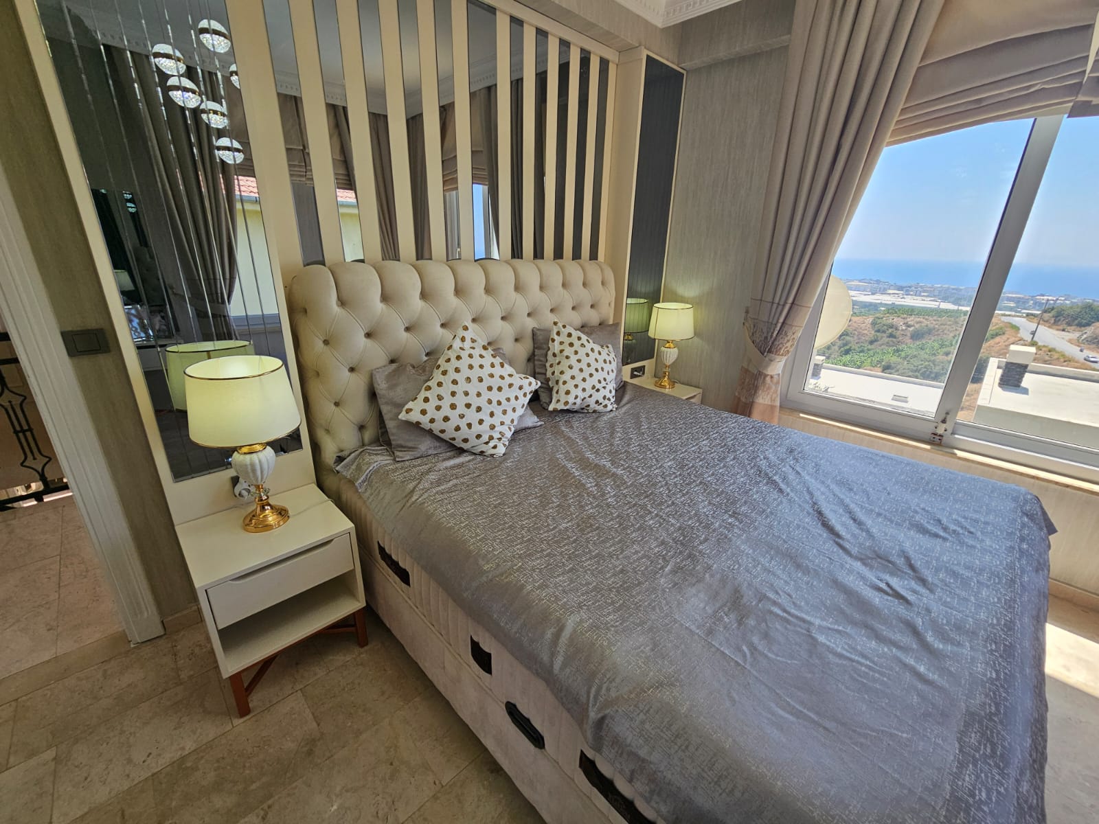 This amazing renovated 3+1 fully furnished villa is situated in the well-kept villa part in the famous 5 star hotel complex Goldcity in Kargicak, with magnificent views over the Mediterranean, Mahmutlar, Alanya city and the historic castle!