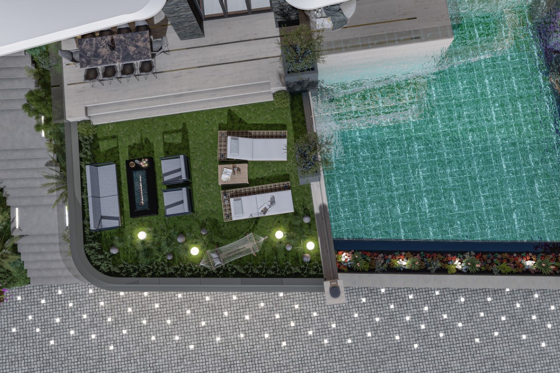The villa offers 410 m² of net living space over 4 floors, set on a 579 m² private plot and is unique in every way, with its own elevator, floorheating, fantatic (heated) swimmingpool with waterfall and with relaxing area in the pool for your sunbed or the interior that is a-ma-zing in all details! The villa will be fully furnished, with the option to customize the interior!